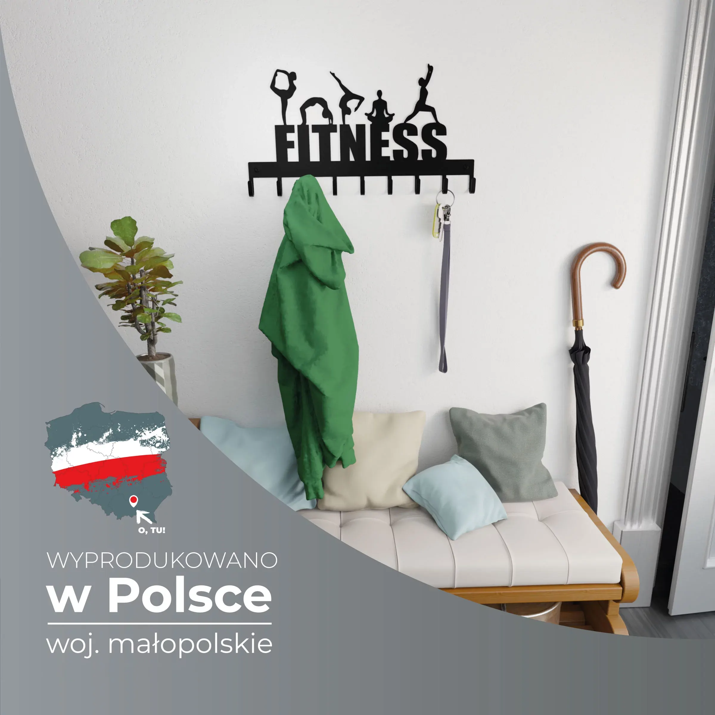 Kochasz fitness? A może posiadasz własne studio fitnessu lub siłownię? Jeśli tak, potrzebny Ci jest wieszak i uchwyt ścienny „FITNESS” na klucze, ubrania i biżuterię. Dzięki niemu masz pewność, że w Twoim wnętrzu nie zapanuje chaos, a ubrania i inne drobiazgi znajdą się dokładnie tam, gdzie powinny. Musisz jednak wiedzieć, że ten niecodzienny wieszak ścienny inspirowany światem fitnessu to nie tylko miejsce, na którym można zawiesić klucze, torebki czy kurtki, to również najszczerszy wyraz Twojej pasji i stylu życia.