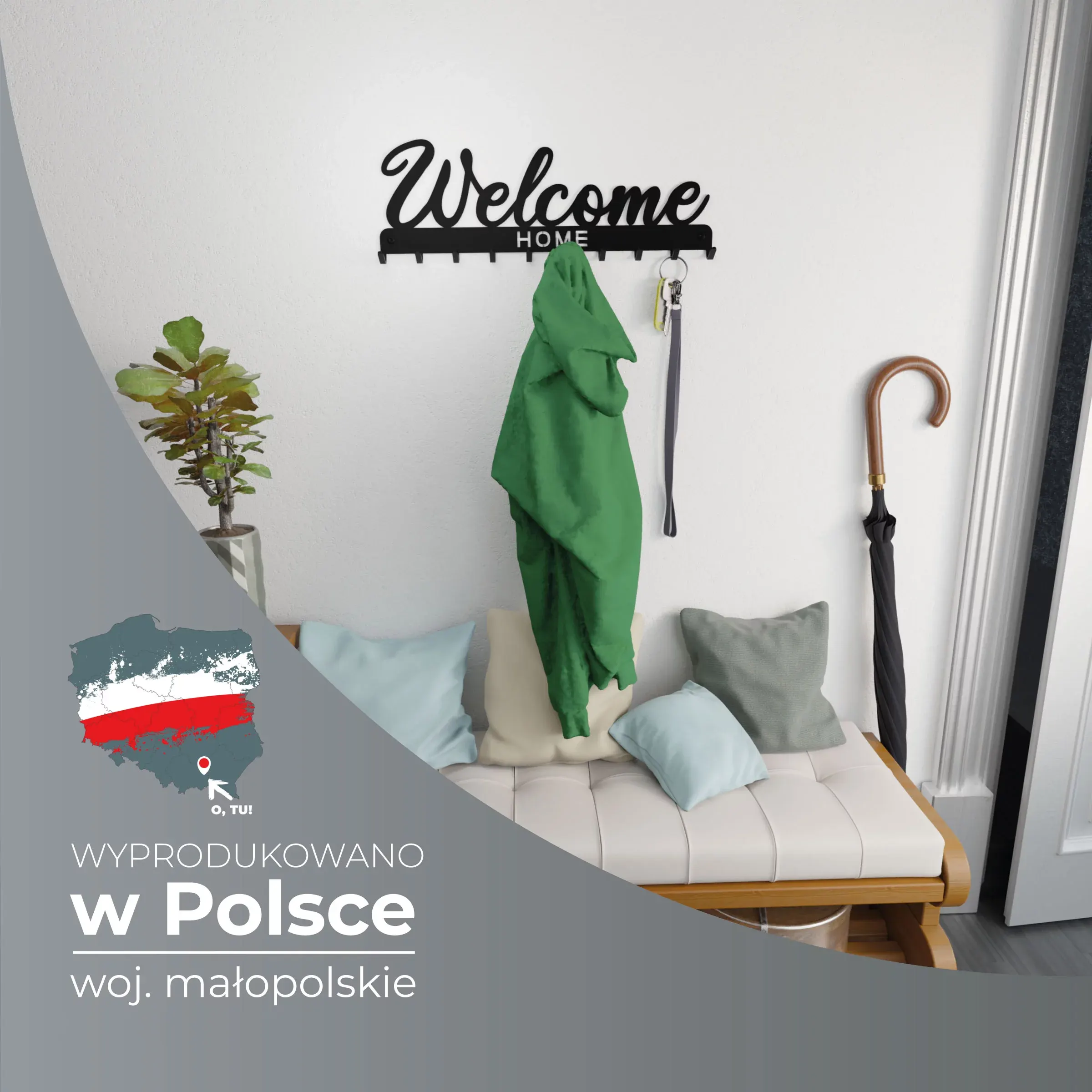 Wieszak, a dokładniej uchwyt ścienny „Welcome home” powstał w odpowiedzi na Twoje potrzeby. To najprostszy sposób na organizację w Twoim domu.